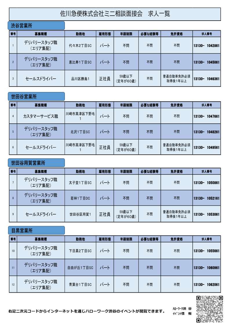 【ハローワーク渋谷】2/16 佐川急便株式会社 ミニ相談面接会
