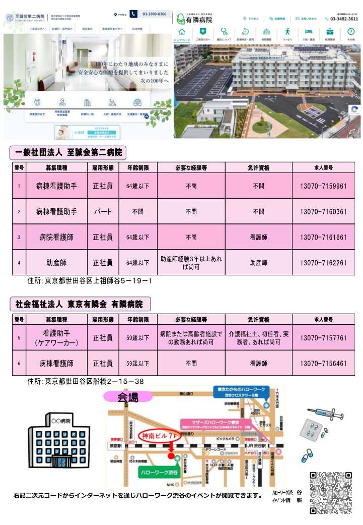 【ハローワーク渋谷】3/2(月) 未経験からはじめる看護補助(看護助手)セミナー