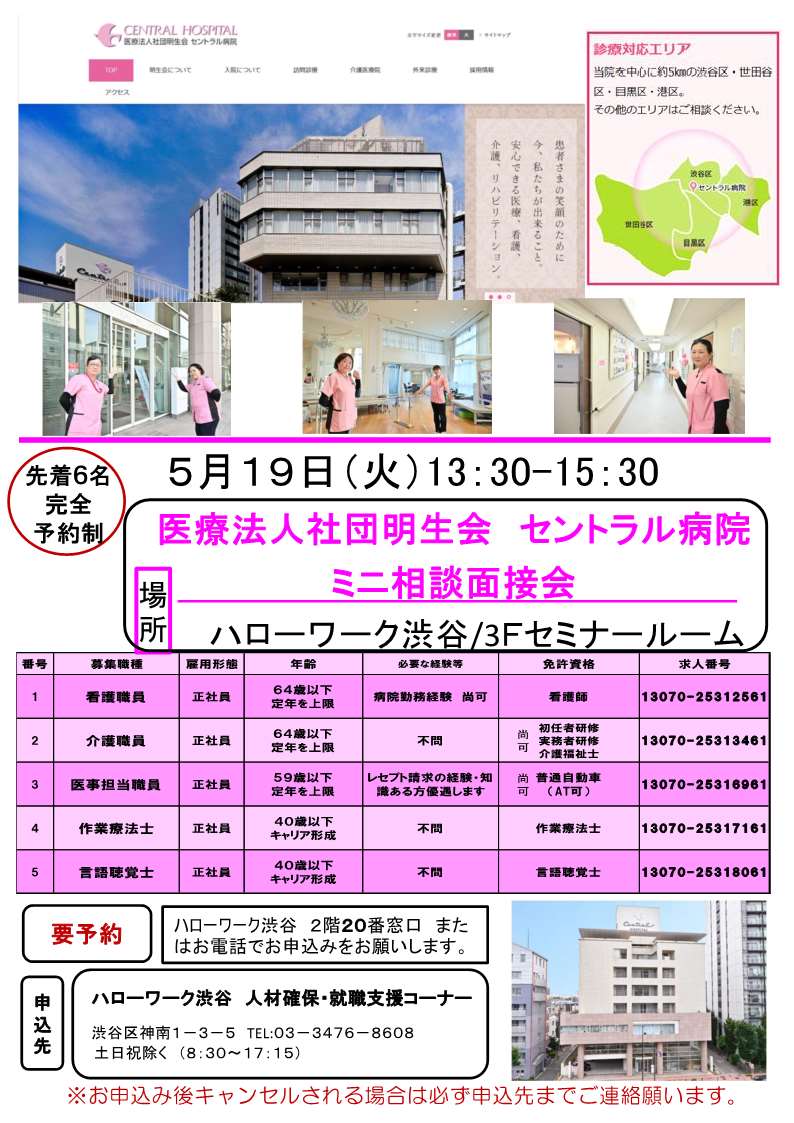 【ハローワーク渋谷】5/19(火) 医療法人社団明生会 セントラル病院 ミニ相談・面接会を開催します