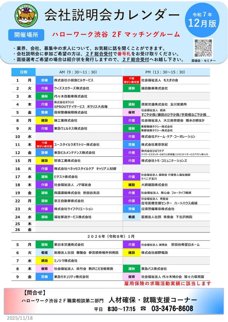 - 【ハローワーク渋谷】12/18 警備業界セミナー