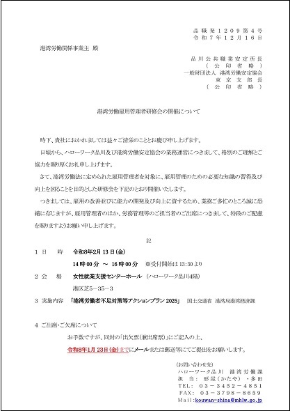 ●【NEW】令和7年度 港湾労働雇用管理者研修会の開催について