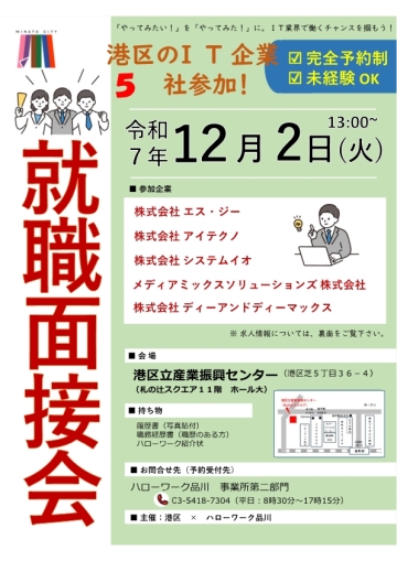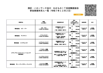 【令和7年12月2日(火)】港区・ハローワーク品川 IT系就職面接会のお知らせ