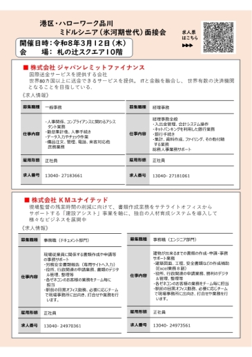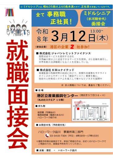【令和8年3月12日(木)】港区・ハローワーク品川 ミドルシニア就職面接会のお知らせ