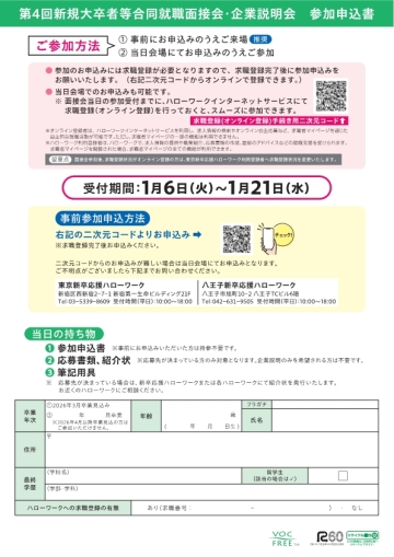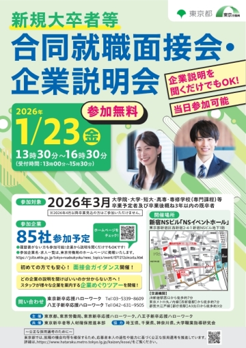 【東京労働局】1/23(金)第4回新規大卒者等就職面接会・企業説明会のご案内