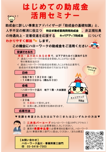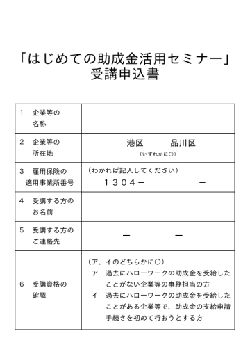 ○受講資格:① 過去にハローワークの助成金を受給したことがない企業等の事務担当者の方