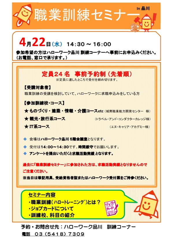 ☆参加申込みは、ハローワーク品川 訓練コーナーまで