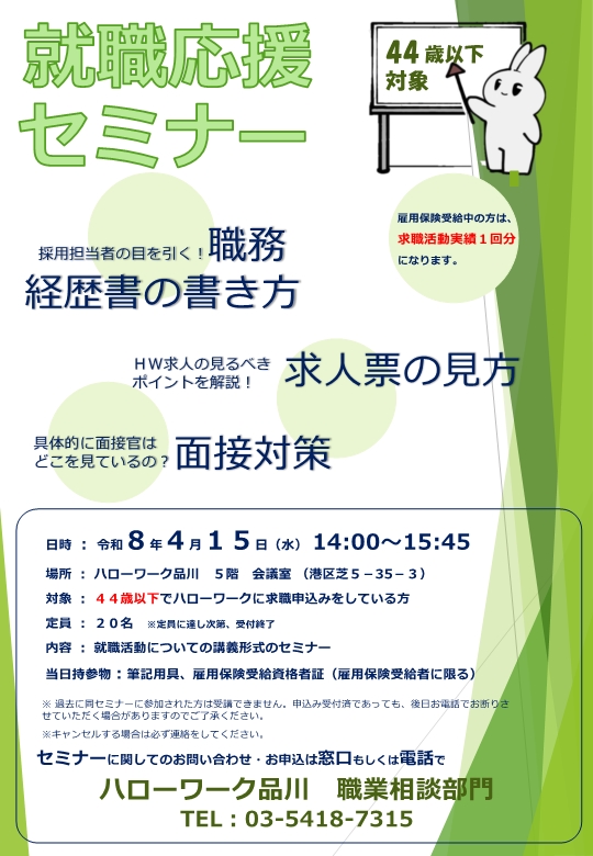 就職応援セミナー(44歳以下対象)