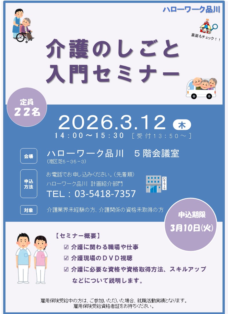 〇場 所 ハローワーク品川 5階 会議室 (港区芝5-35-3)