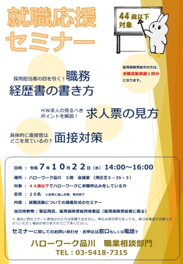 ☆参加申込は、ハローワーク品川1階受付までお申し出ください。