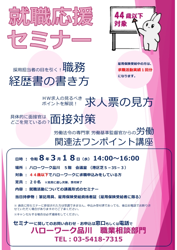 ☆参加申込は、ハローワーク品川1階受付までお申し出でください。