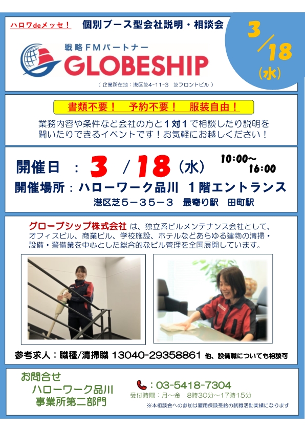 ハロワ de メッセ 個別ブース型説明会・相談会のご案内 ~グローブシップ株式会社~