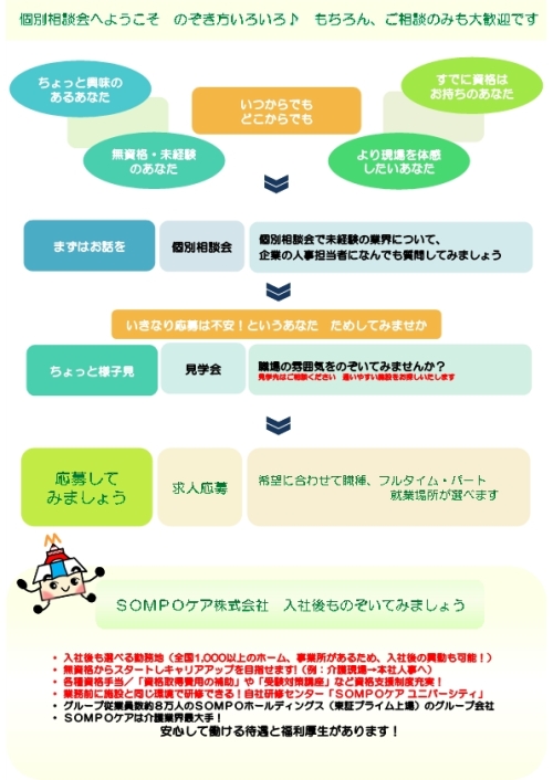 業界トップクラスをほこるSOMPOケアの個別相談会。