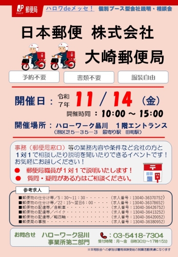 【令和7年11月14日(金)】個別ブース型会社相談会のご案内~日本郵便株式会社大崎郵便局~