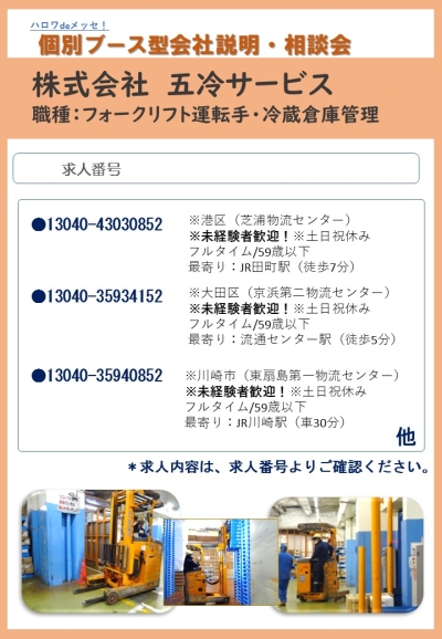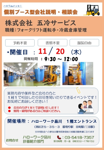 【令和7年11月20日(木)】ハロワdeメッセ(個別ブース型会社説明・相談会)のご案内~株式会社五冷サービス~