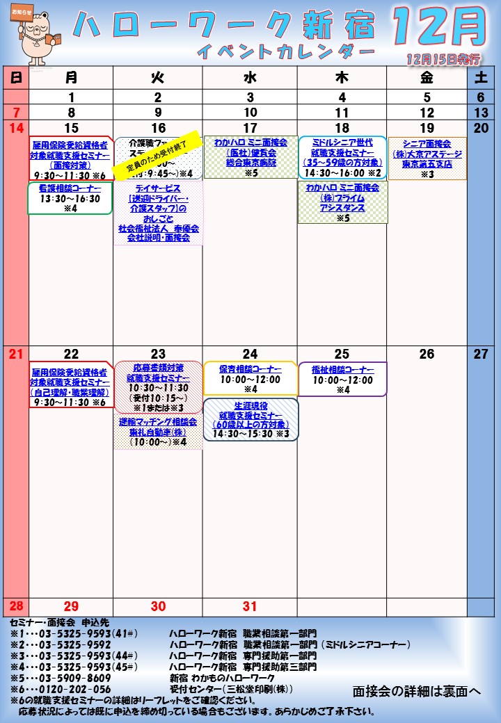 - 12/24(水)生涯現役就職支援セミナー【定員に達したため、受付は終了しました。】