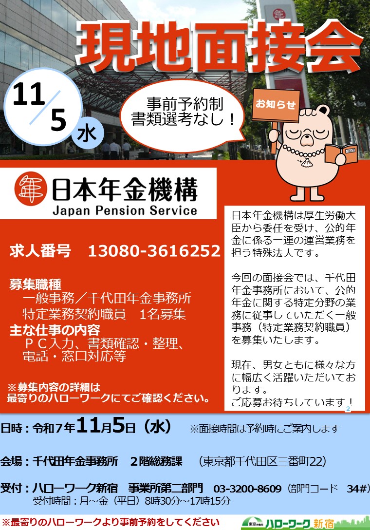 千代田年金事務所を会場としたミニ面接会を開催します。