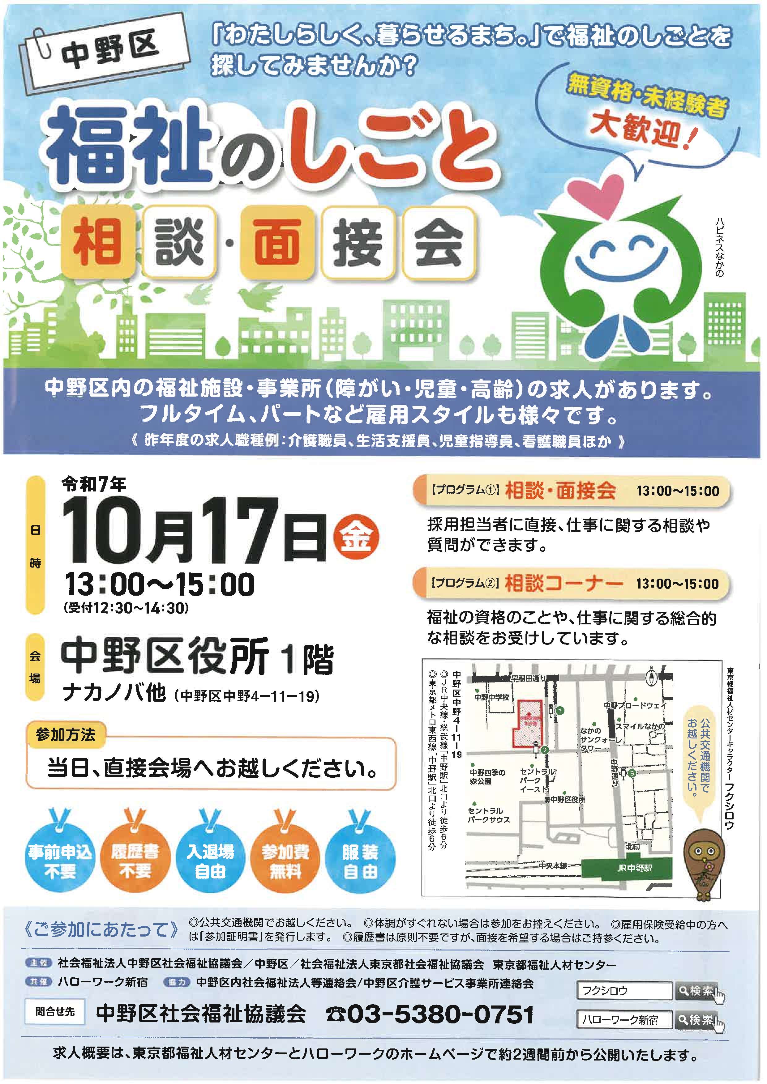 「中野区 福祉のしごと」就職相談・面接会 開催のお知らせ