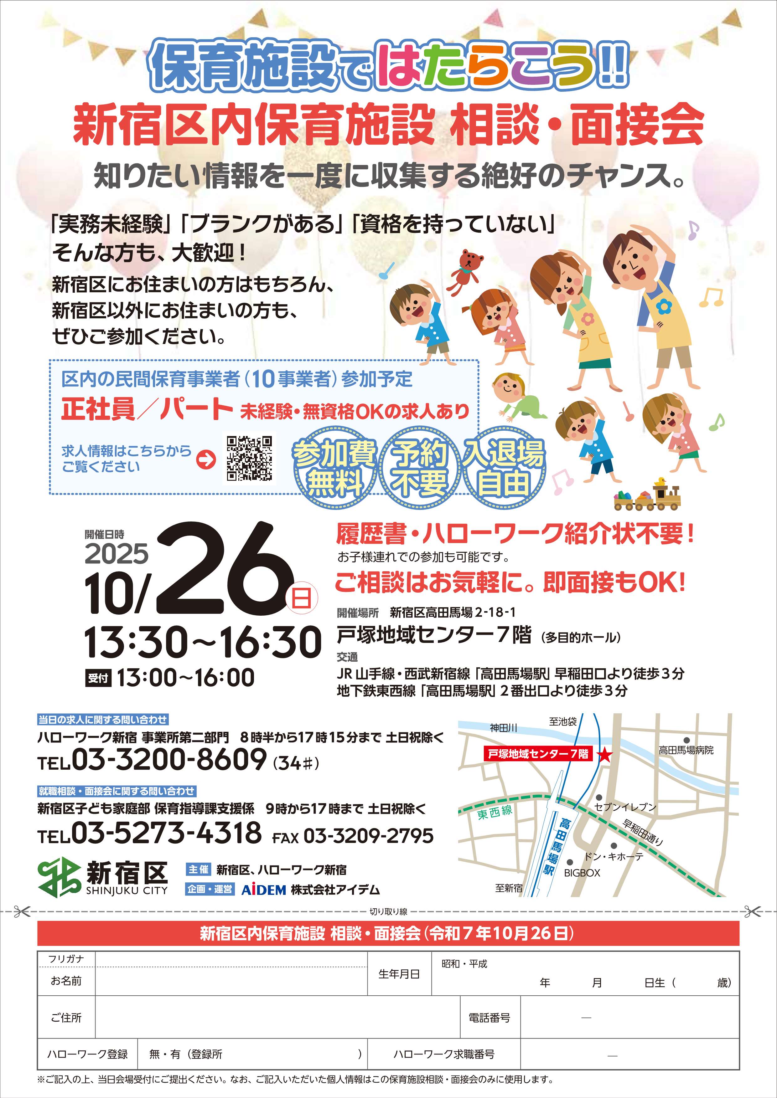 「新宿区内保育施設」相談・面接会 開催のお知らせ