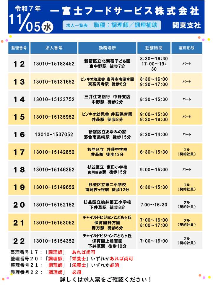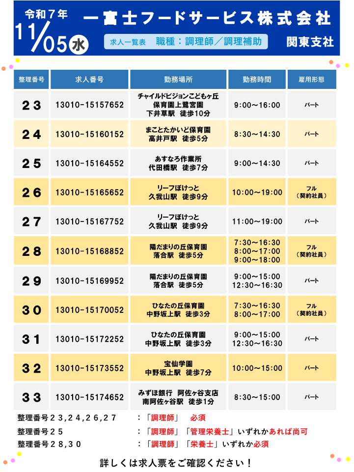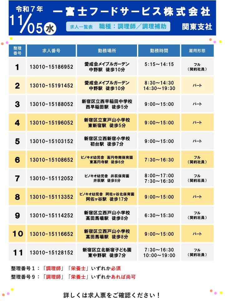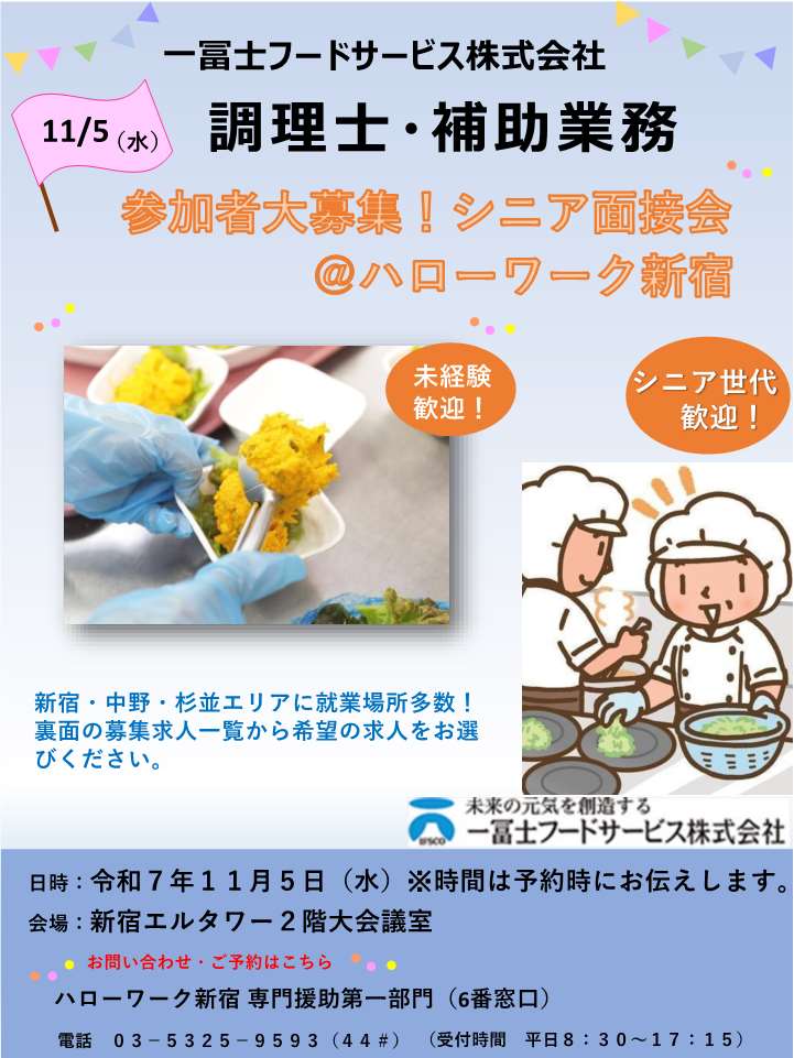 【新宿】11/5(水) シニア面接会「株式会社一冨士フードサービス」を開催します。