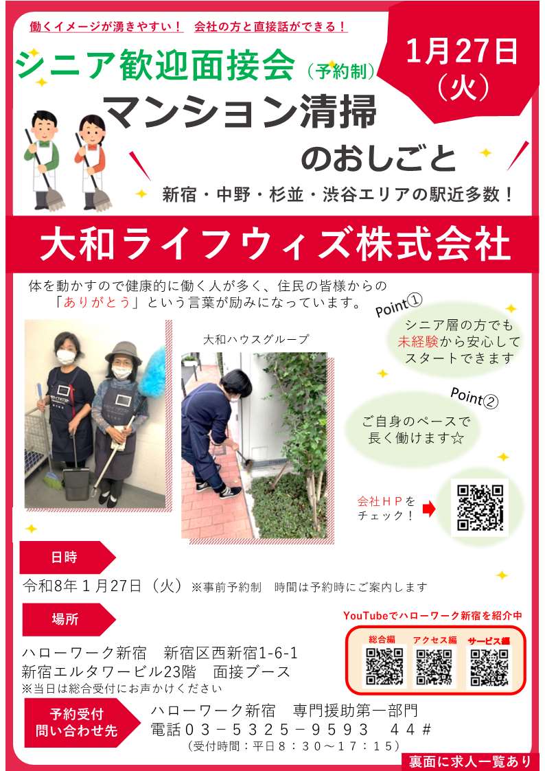 【新宿】【NEW】1/27(火) シニア歓迎面接会「大和ライフウィズ株式会社」を開催します。