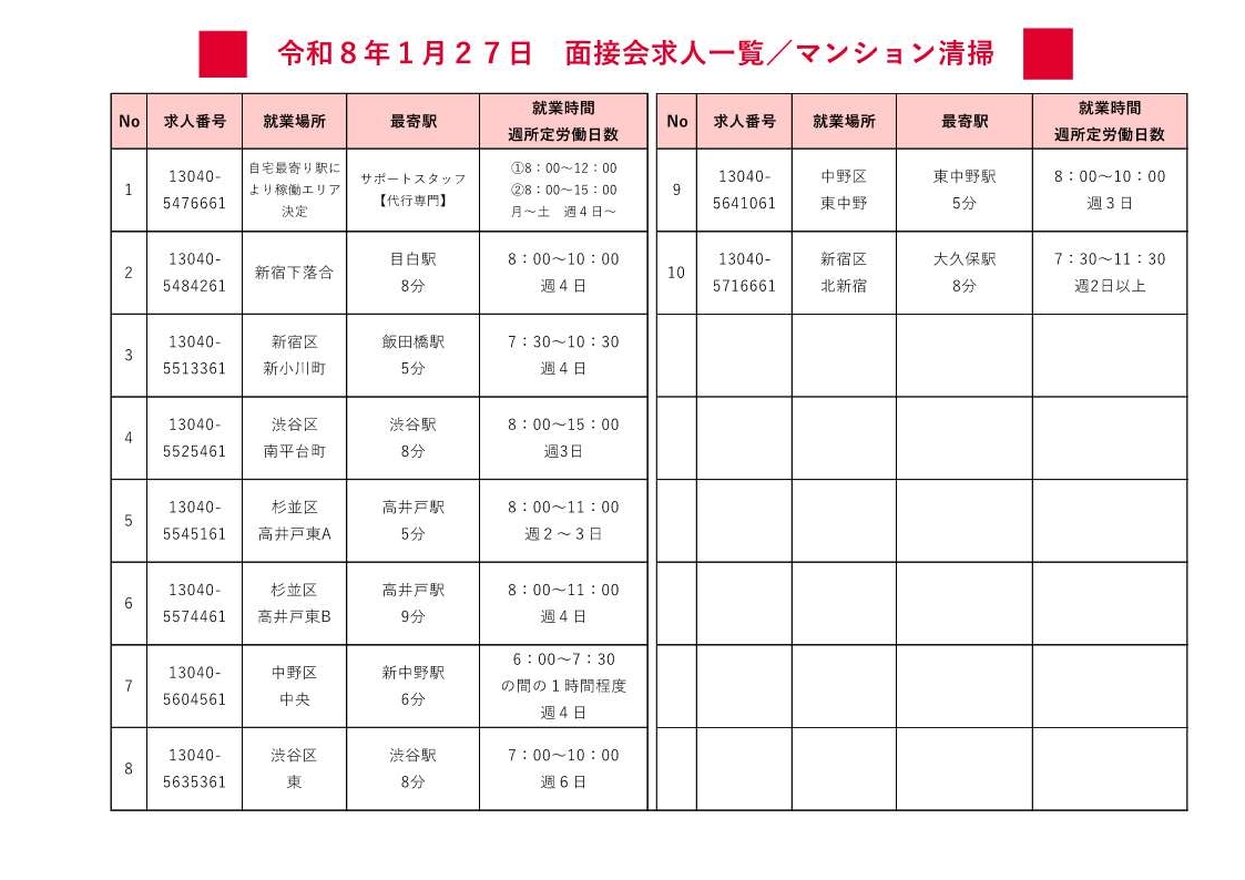 就業場所は新宿区・中野区・杉並区などの最寄り駅から徒歩圏内のマンションです。