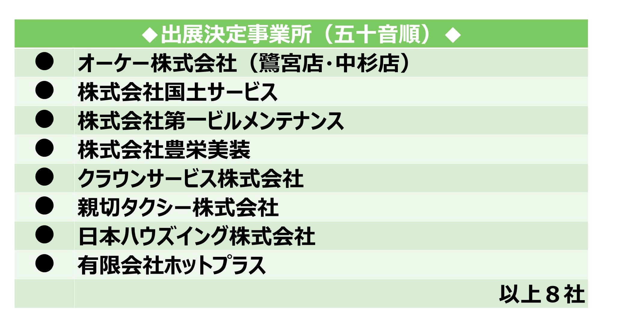 選考の結果、ご出展いただく企業につきまして、下記の通り決定いたしました。