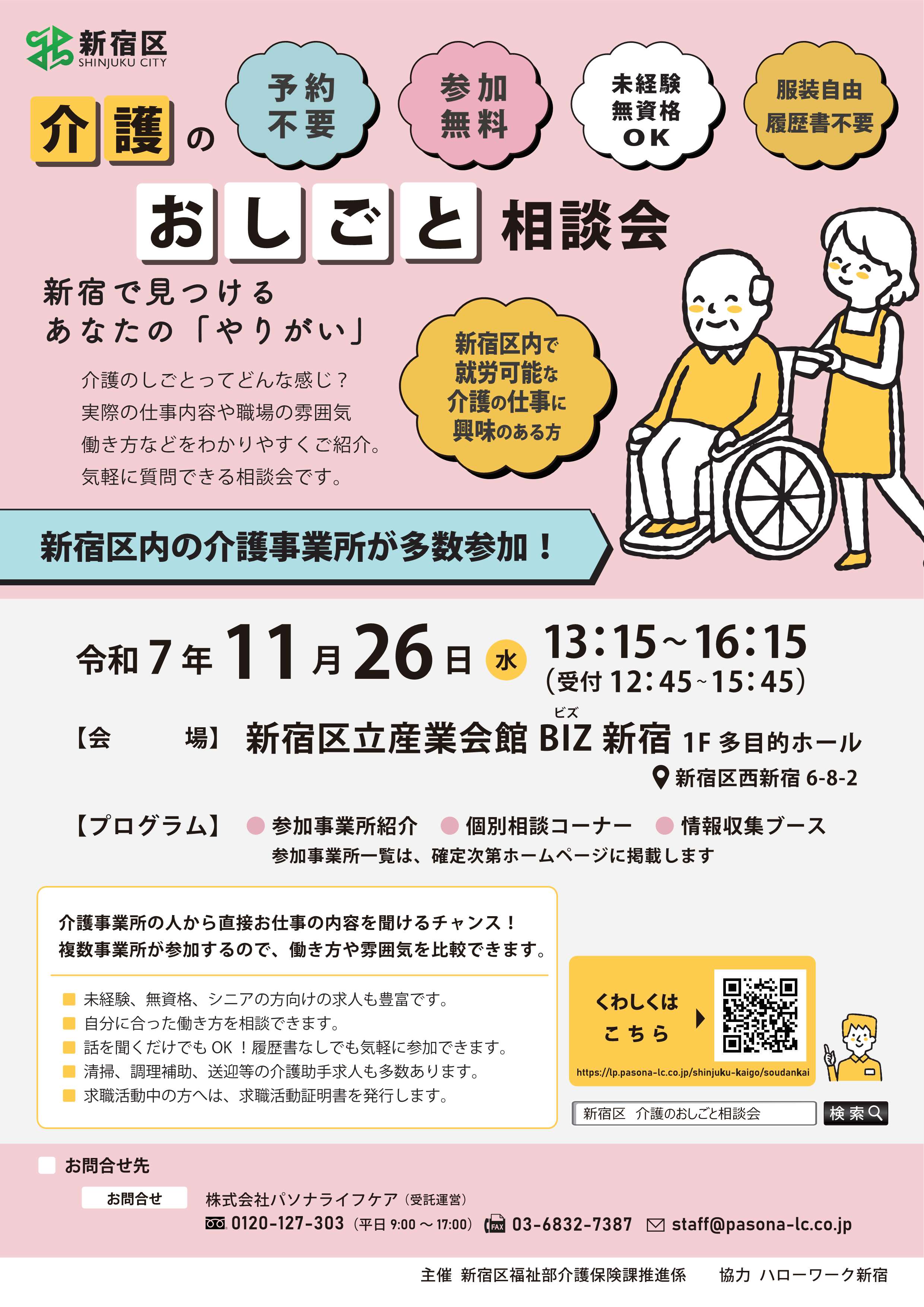 「新宿区 介護のおしごと相談会」開催のお知らせ