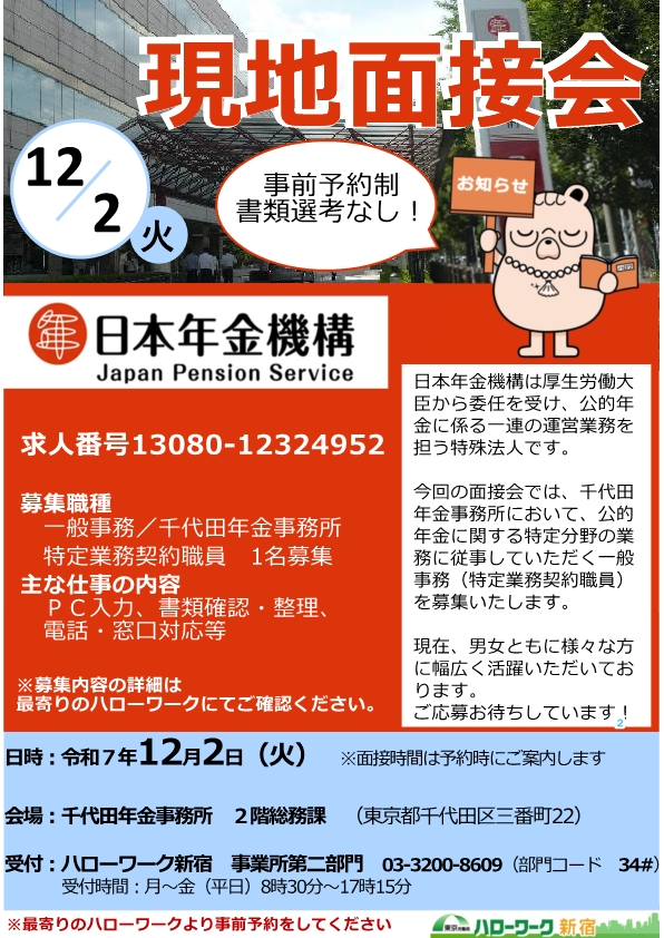 千代田年金事務所を会場としたミニ面接会を開催します。
