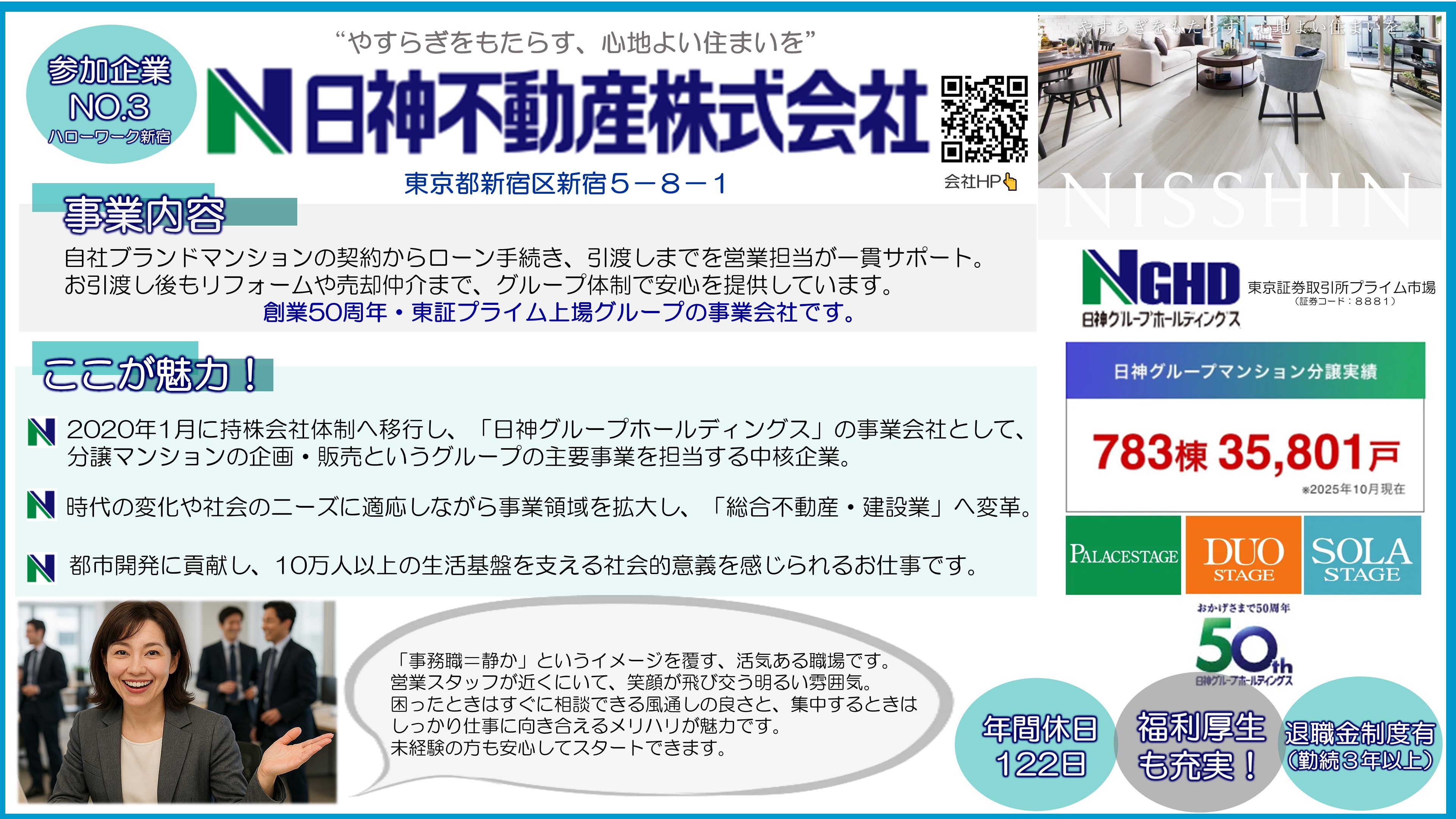 本イベントでは、ハローワーク飯田橋およびハローワーク新宿の管轄の各2企業、計4社と直接面接ができます。