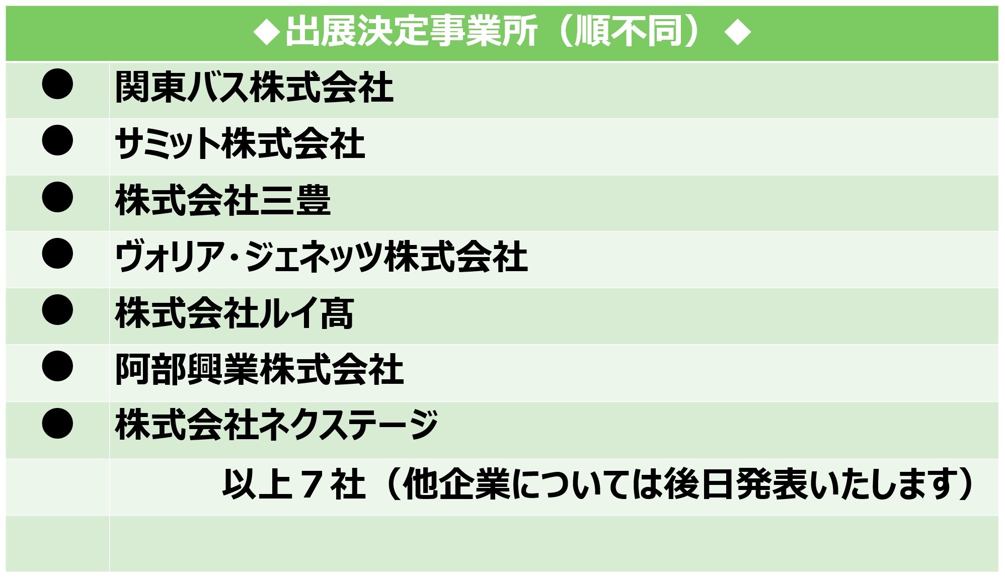 選考の結果、ご出展いただく企業につきまして、下記の通り決定いたしました。