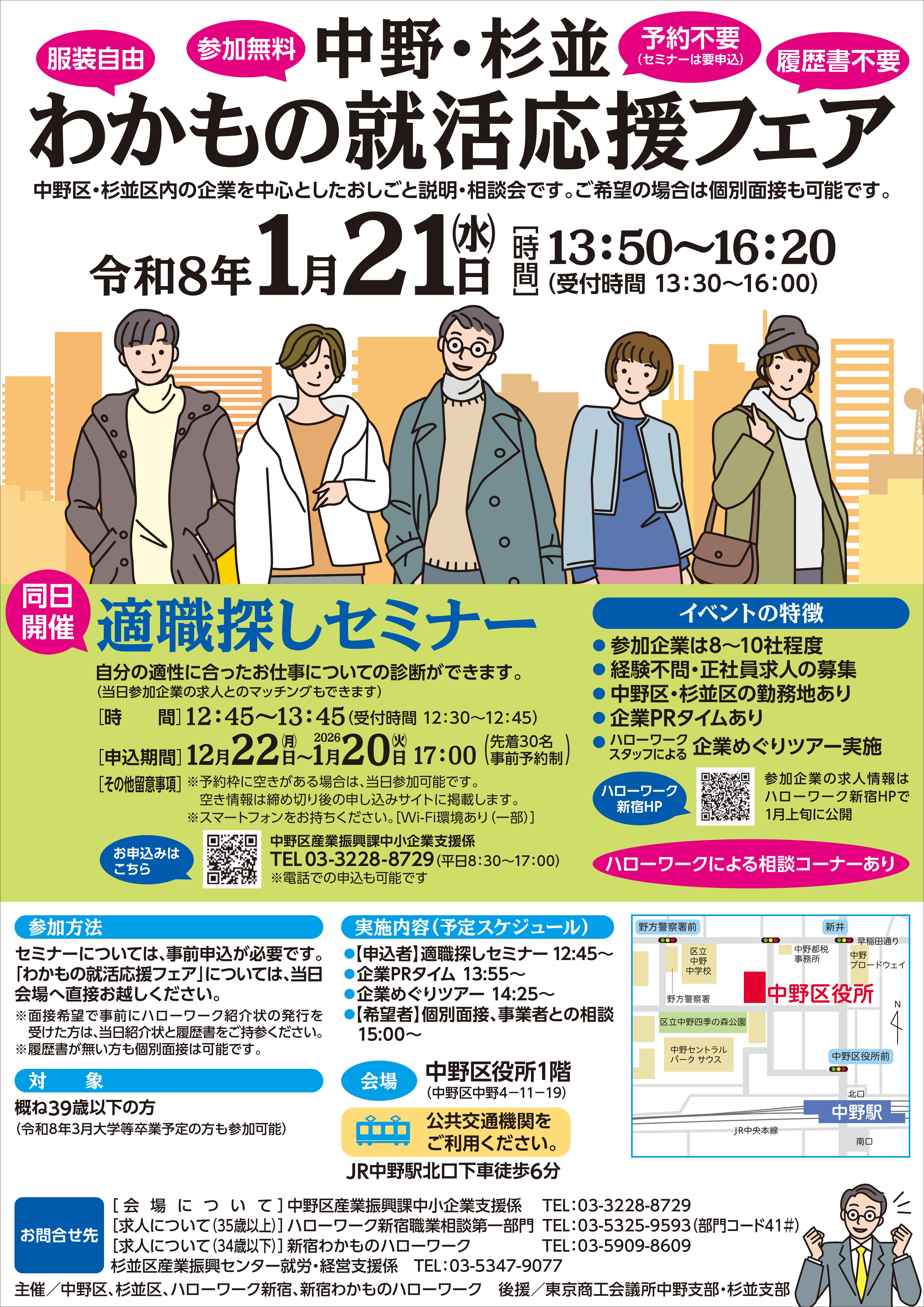 - 1/21(水)中野・杉並「わかもの就活応援フェア」開催のお知らせ