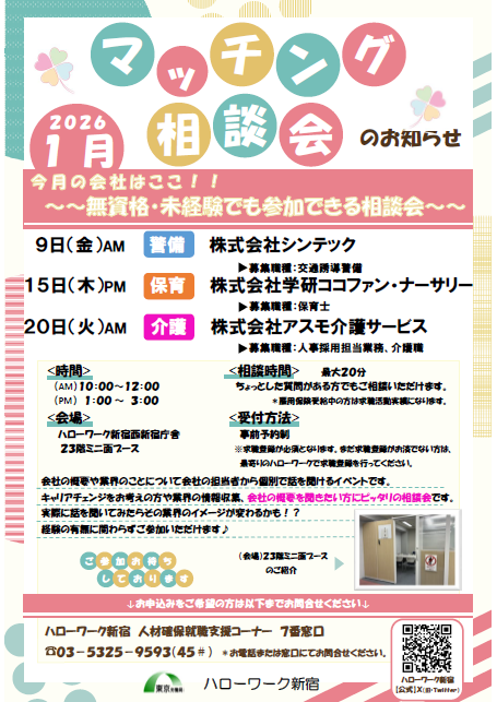 〇会社への訪問不要(会場:ハローワーク新宿)