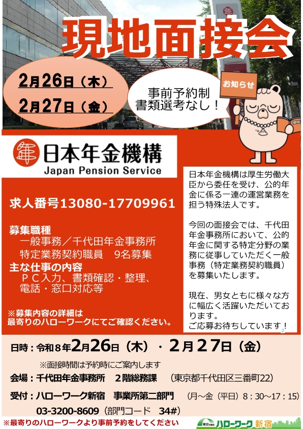 千代田年金事務所を会場としたミニ面接会を開催します。
