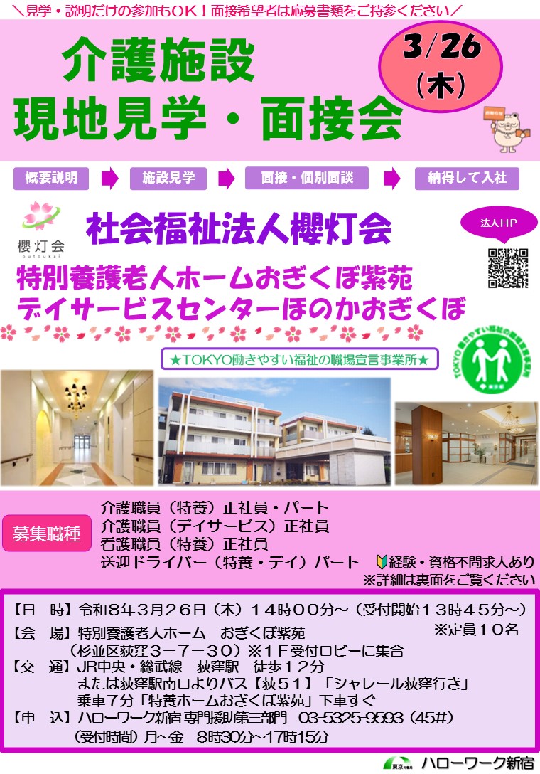 3/26(木) 介護施設 現地見学・面接会開催のお知らせ 【社会福祉法人櫻灯会】