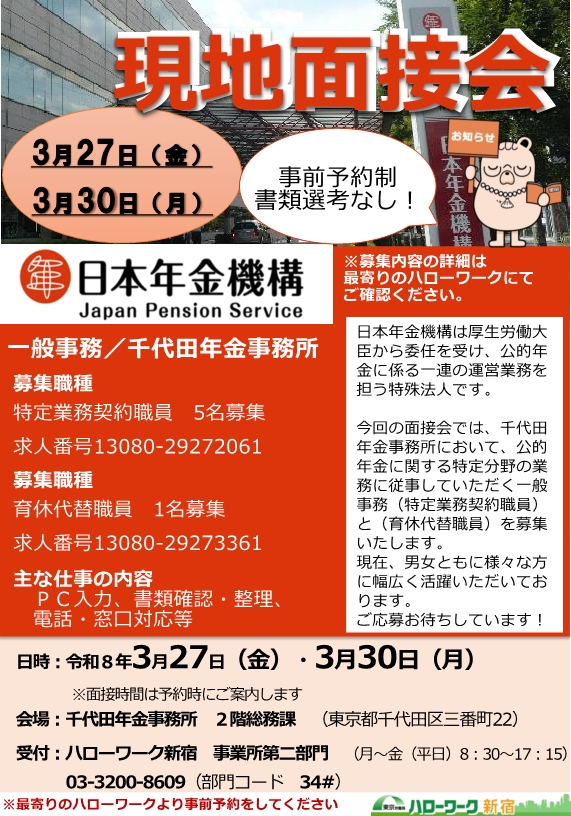 千代田年金事務所を会場としたミニ面接会を開催します。