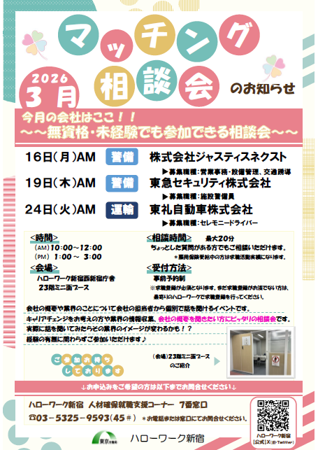 〇会社への訪問不要(会場:ハローワーク新宿)