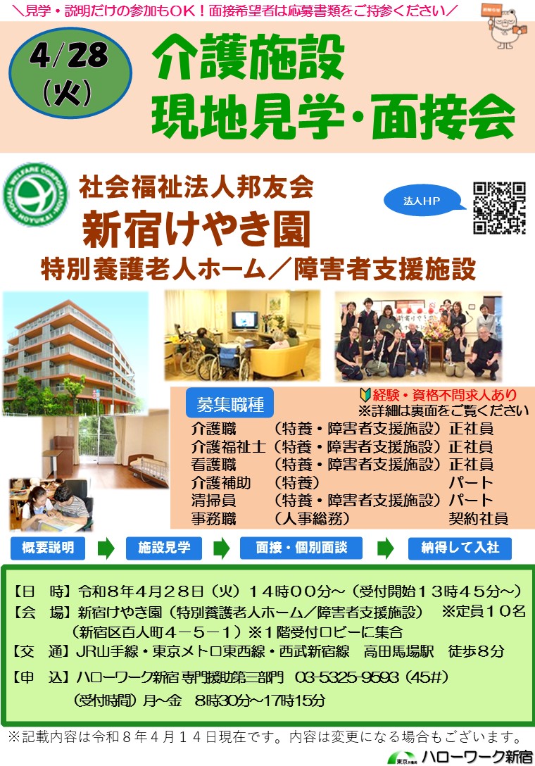 4/28(火)介護施設 現地見学・面接会開催のお知らせ【社会福祉法人邦友会】