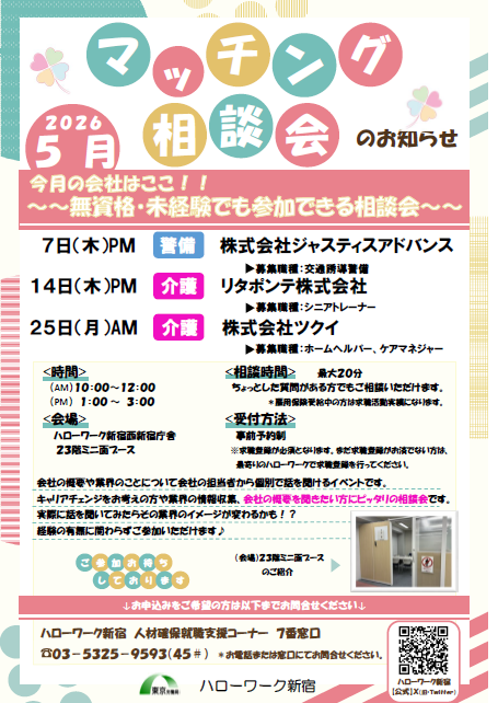 〇会社への訪問不要(会場:ハローワーク新宿)