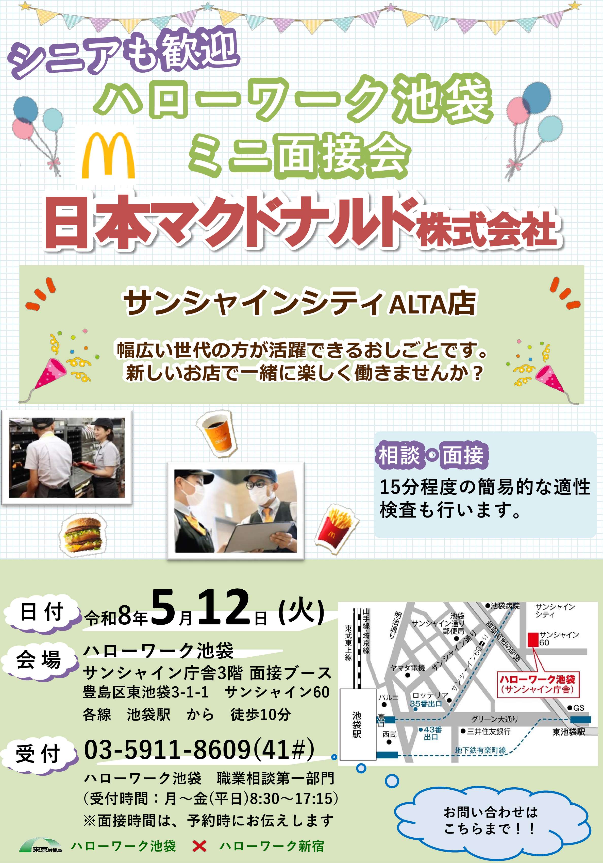 ミニ面接会開催のお知らせ@ハローワーク池袋【日本マクドナルド株式会社】