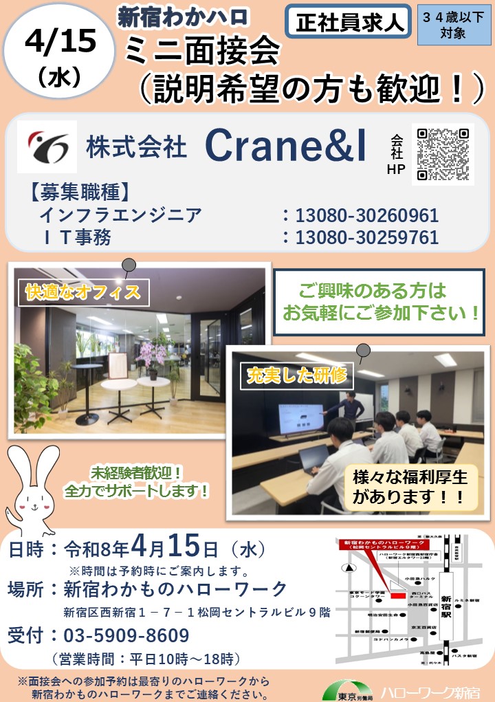 - 新宿わかものハローワーク 10時~18時(休日・祝日を除く)