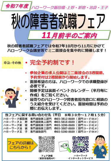 - 令和7年10月から11月にかけて 都内ハローワーク会議室等でミニ面接会を開催!