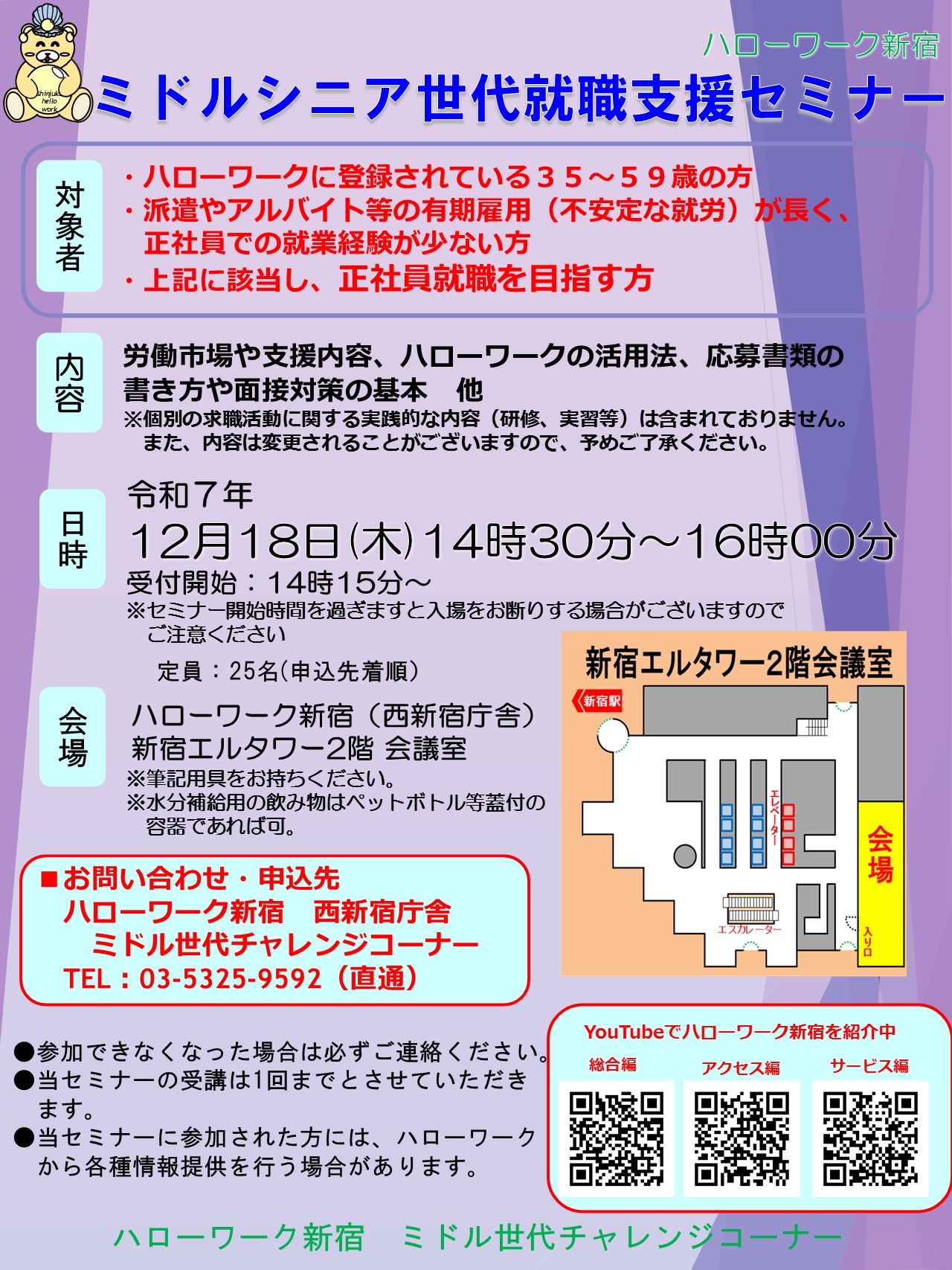 - ハローワーク新宿ミドル世代チャレンジコーナー