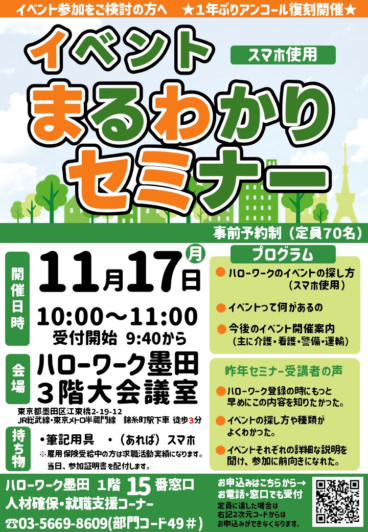 【令和7年11月17日開催】イベントまるわかりセミナー(ハローワーク墨田)
