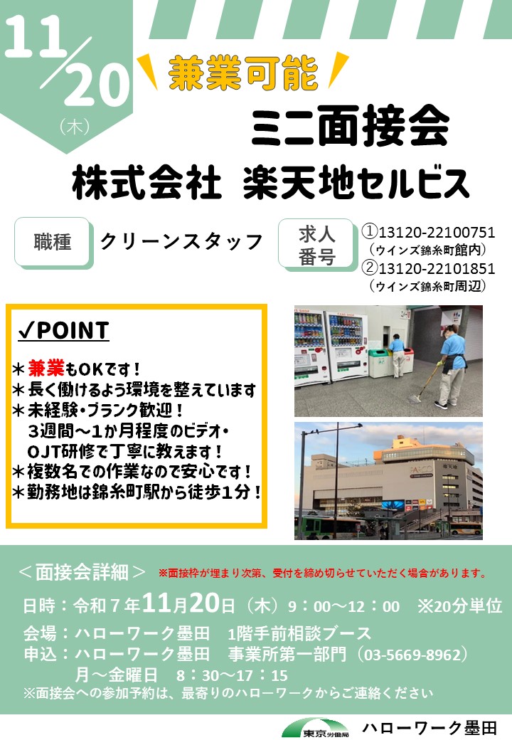 【11月20日】株式会社楽天地セルビス ミニ面接会