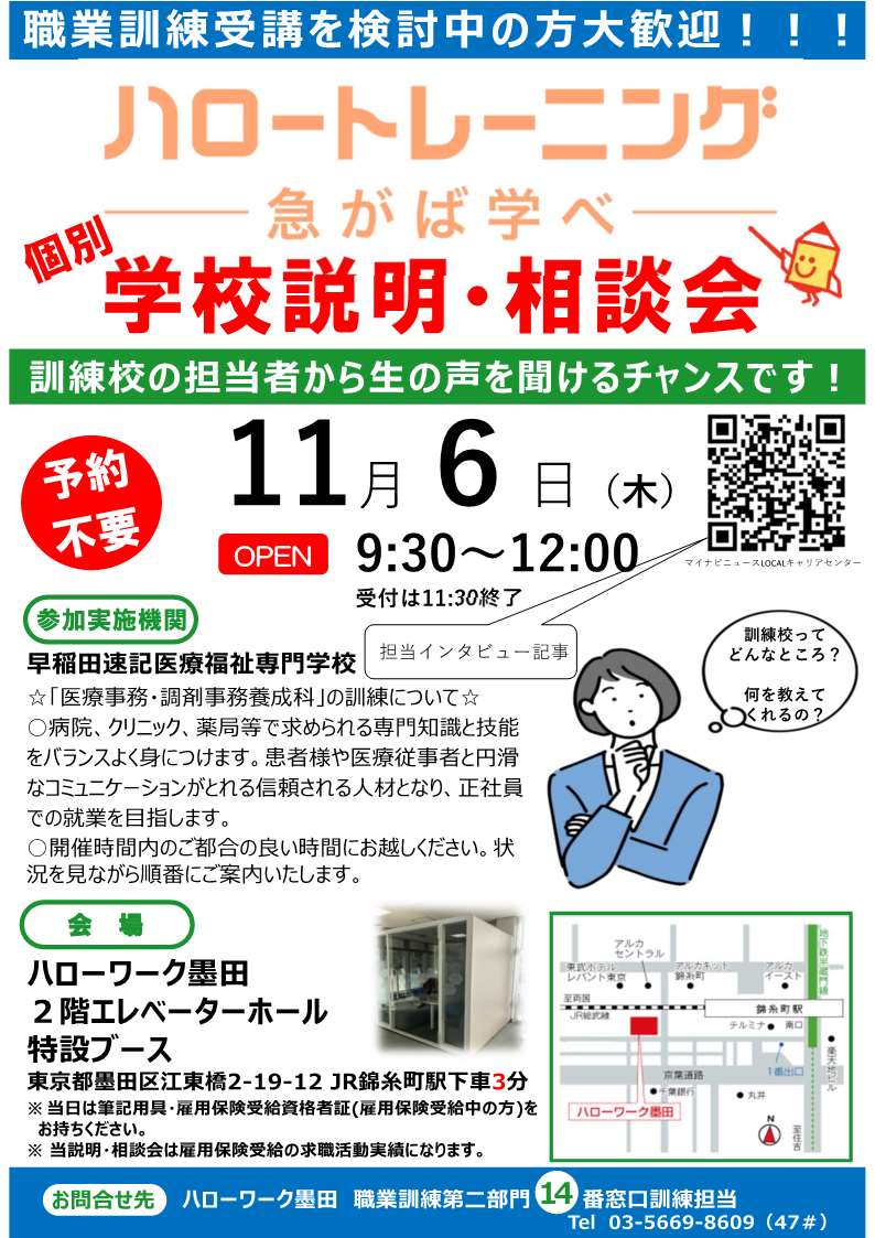【11月6日開催】ハロートレーニング 個別学校説明・相談会(早稲田速記医療福祉専門学校)