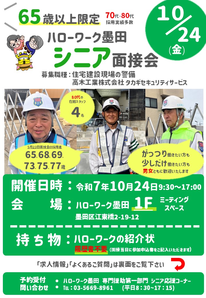 【10月24日】高木工業株式会社タカギセキュリティサービス シニア面接会