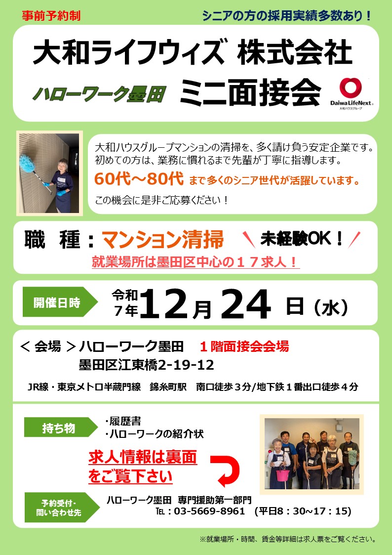【12月24日】大和ライフウィズ株式会社 ミニ面接会