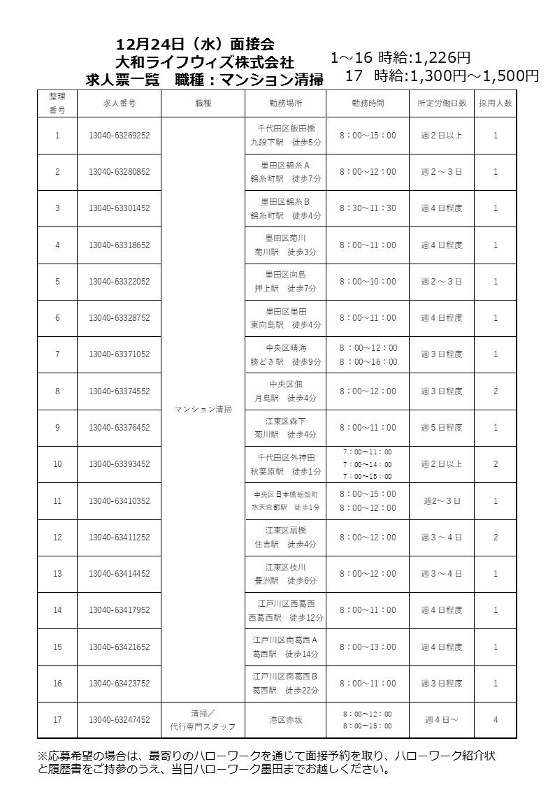- ハローワーク墨田 1階面接会会場(墨田区江東橋2-19-12)