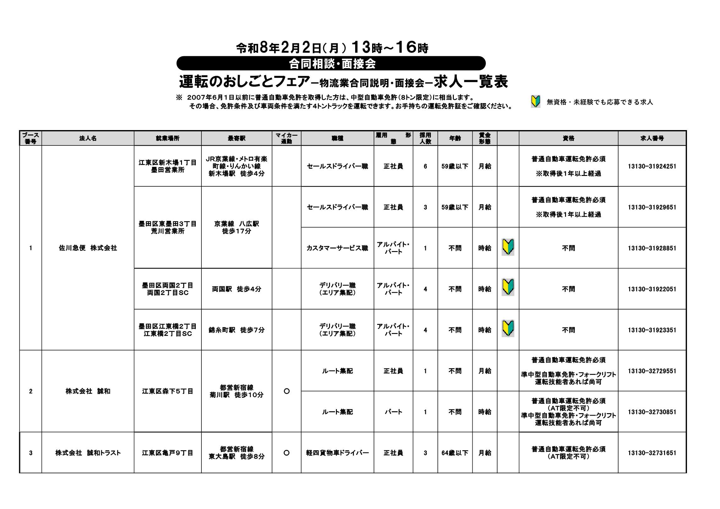 【令和8年2月2日開催】運転のおしごとフェア 物流業合同説明・面接会開催のお知らせ