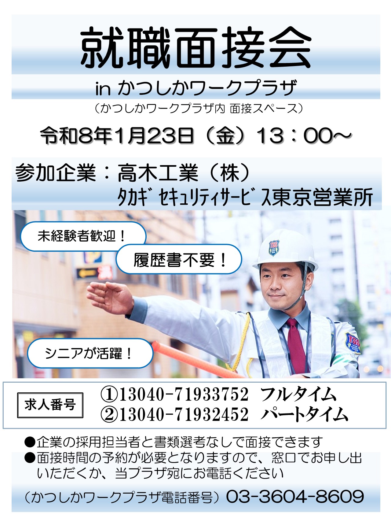【1月23日】高木工業株式会タカギセキュリティサービス東京営業所 就職面接会